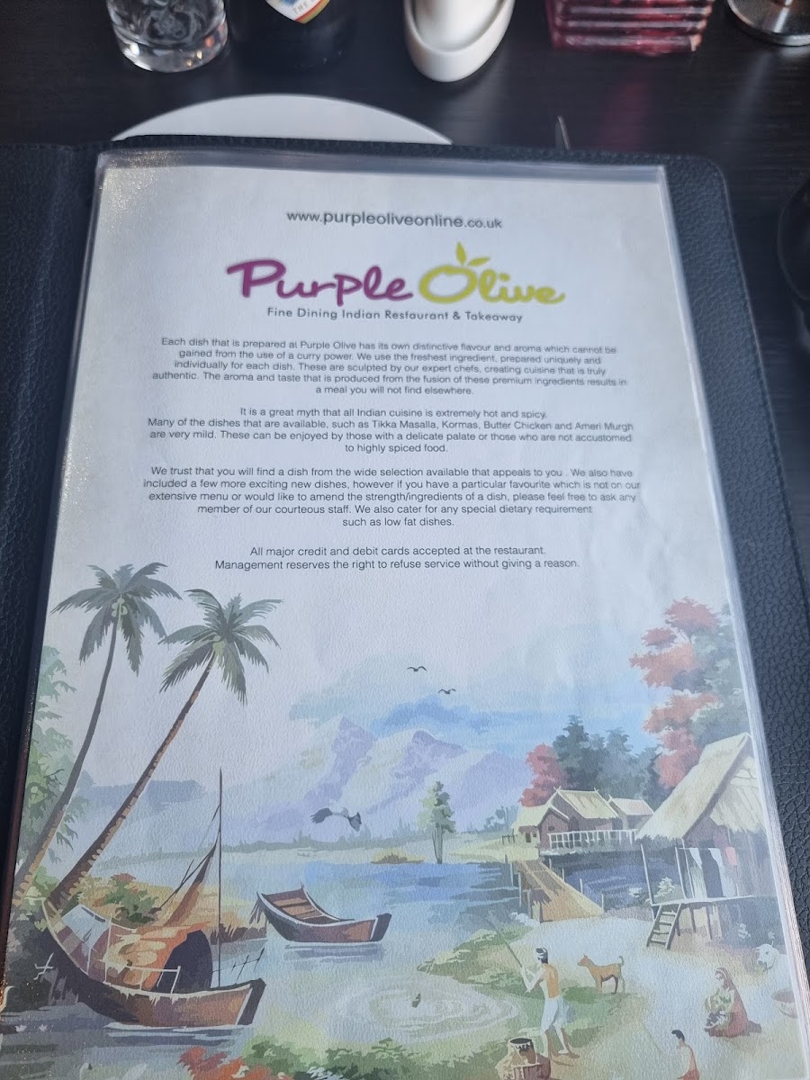 At Purple Olive, the menu feels like a confident blend of classic Indian favourites and a few unexpected touches, all designed to satisfy both comfort seekers and more adventurous diners. Grilled starters such as Chicken Shashlik set a strong tone with smoky, charred flavours, while Pakora delivers that familiar crisp bite that works perfectly as a shared opener. Rice and bread options are clearly treated as more than just sides: Pilau Rice, Mushroom Rice, Keema Naan, and Garlic Nan Bread are well-judged companions that balance spice and texture, with Garlic Naan Hot Butter Sauce adding a rich, indulgent twist.
